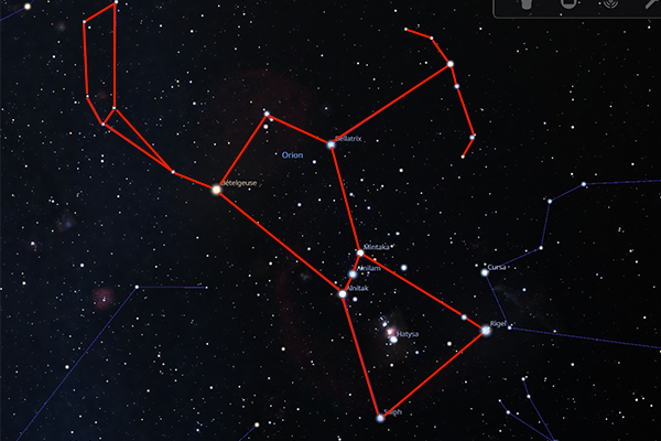 - Ses trois étoiles centrales : Alnitak, Alnilam et Mintaka, qui forment la ceinture.