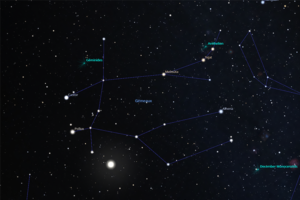- Direction : les météores semblent provenir de la constellation des Gémeaux, d’où leur nom.